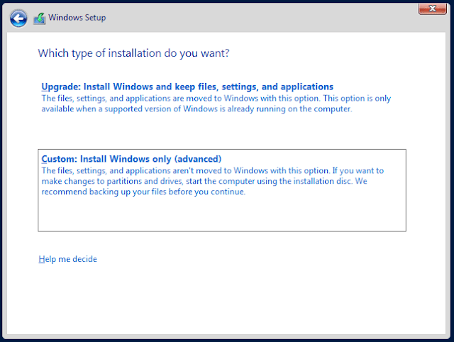 Select 2nd option Custom: Install Windows only (advanced).