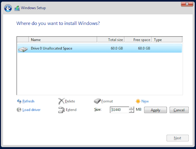 Create your HDD partition here then click Next.